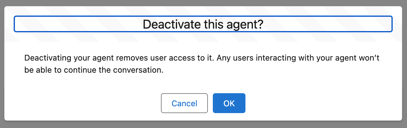 - Since we're making changes, we need to Deactivate our Agent. Locate the Deactivate button at the top right and click it.