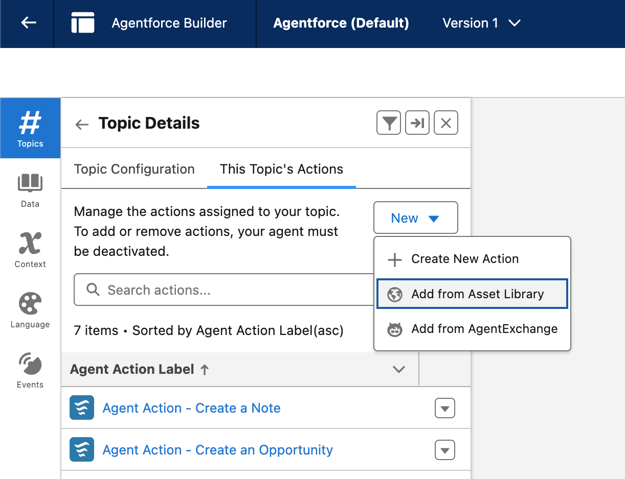 - In the Setup quick find box, type Agent, then select Agentforce Assets.