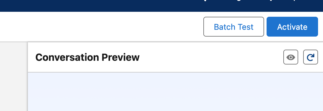 - While in Agent Builder, click the refresh icon at the top right of the Conversation Preview text box (NOT THE BROWSER REFRESH ICON).